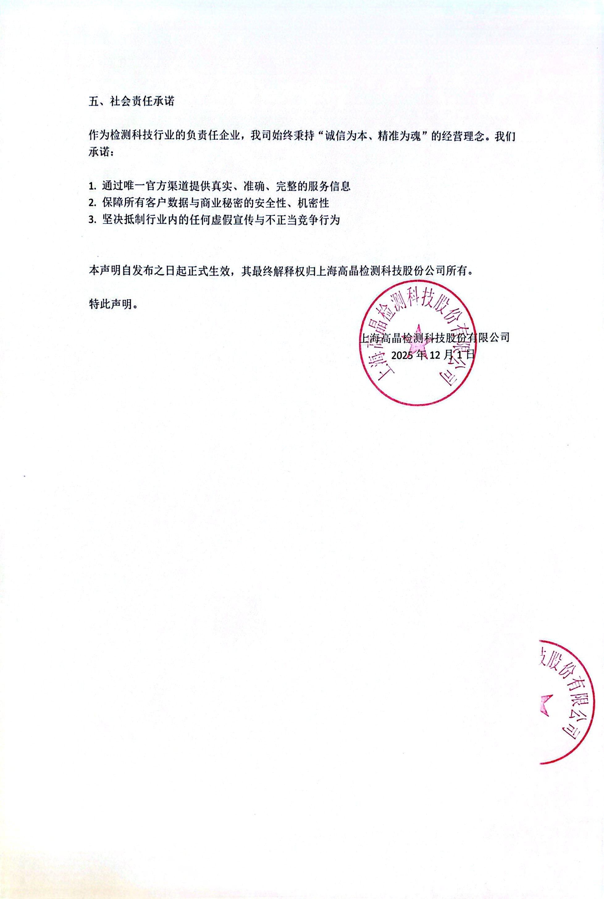 本聲明自發布之日起正式生效,其最終解釋權歸上海高晶檢測科技股份公司所有。