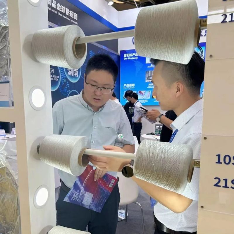 惠同新材料(E3E49)帶來了全系金屬纖維及制品一系列解決方案。展會現場精彩紛呈,熱鬧非凡,展現出了金屬纖維及制品行業的蓬勃面貌?;萃虏耐ㄟ^產品展示、互動等豐富多彩的展現形式吸引參展觀眾留駐展臺,進行深度洽談,共謀金屬纖維行業發展新機遇。