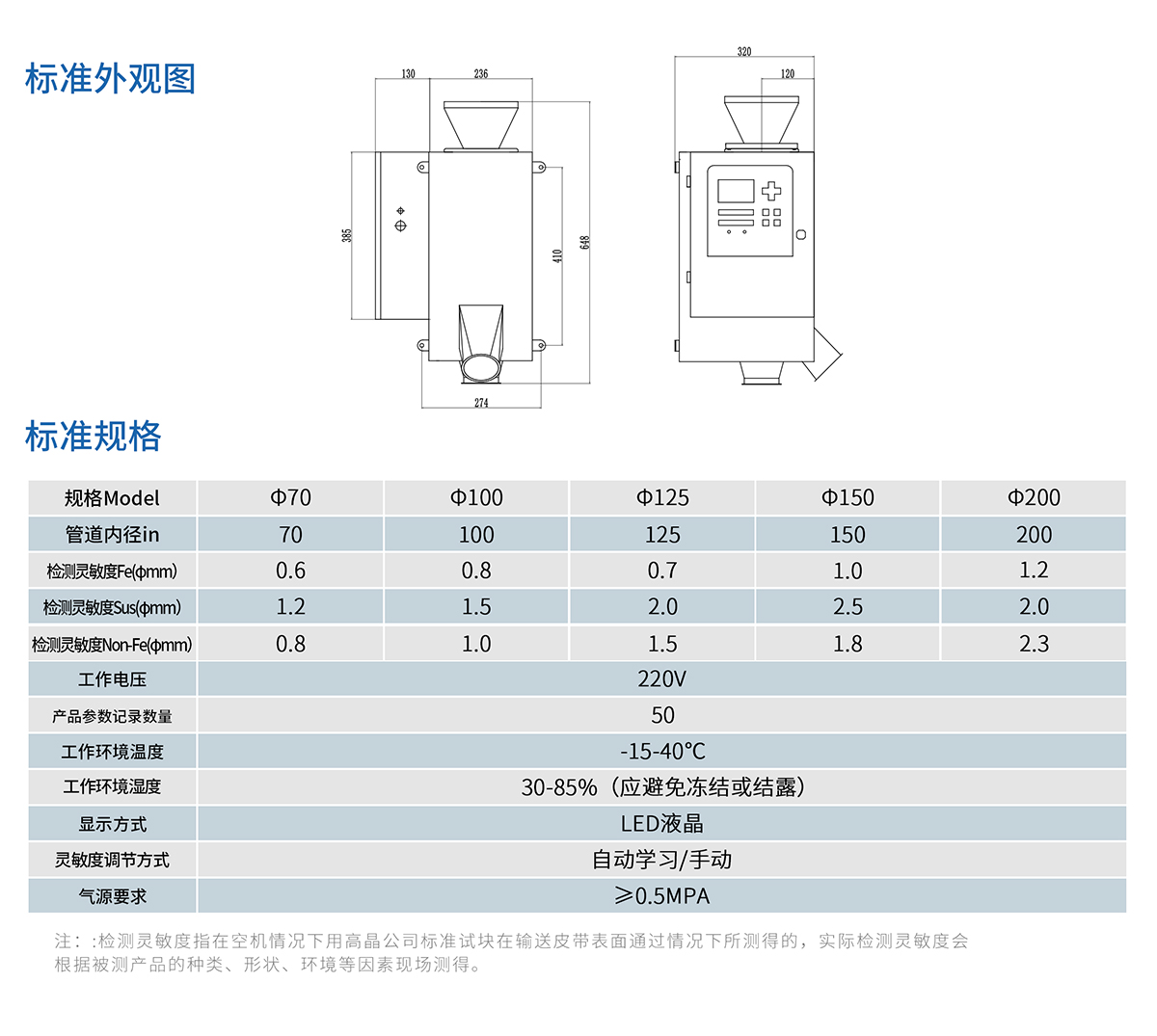 適用于各種粉末狀、顆粒狀、散料等金屬異物檢測。